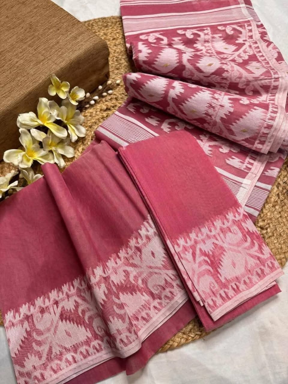 Dull Pink Soft Body Plain Jamdani Sari With Blouse Piece